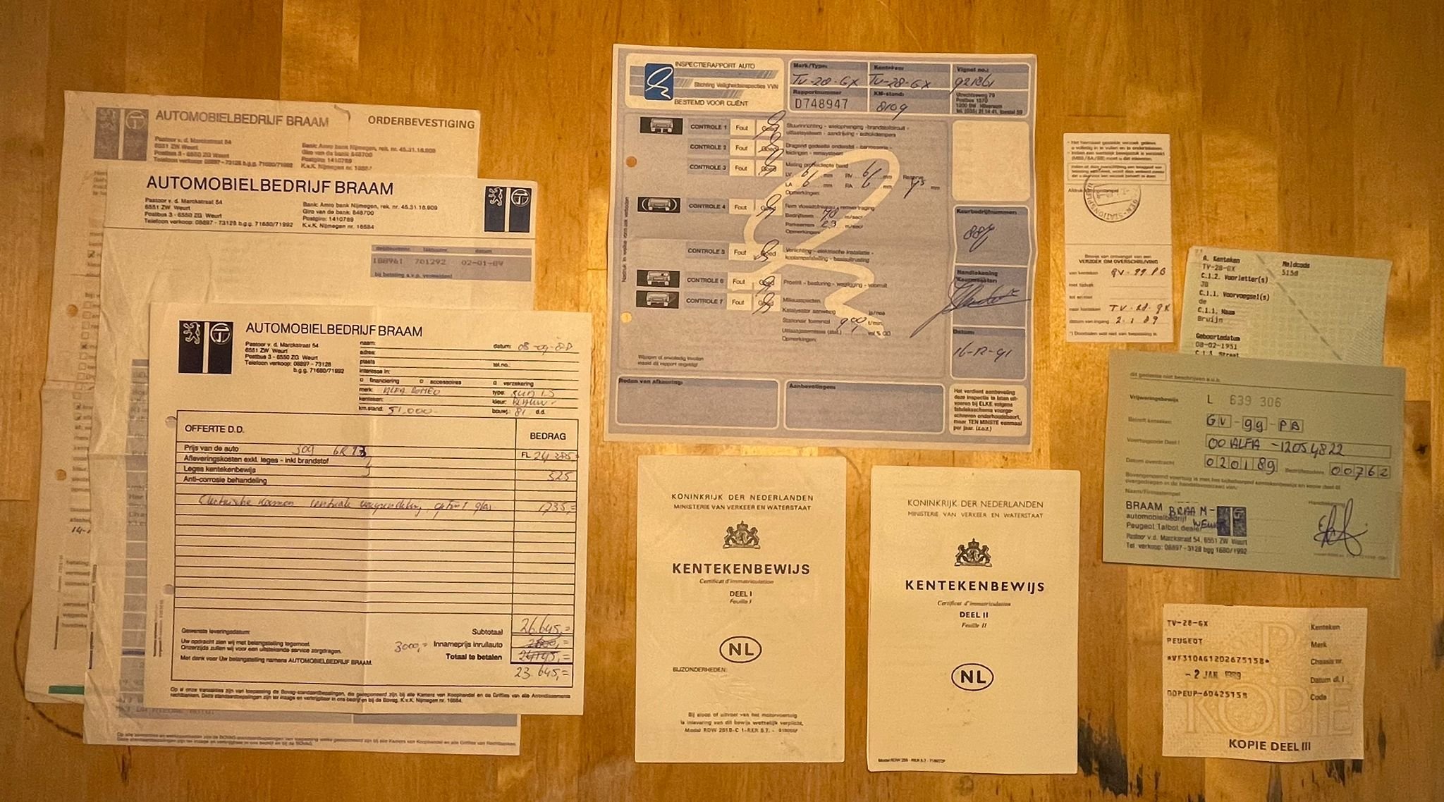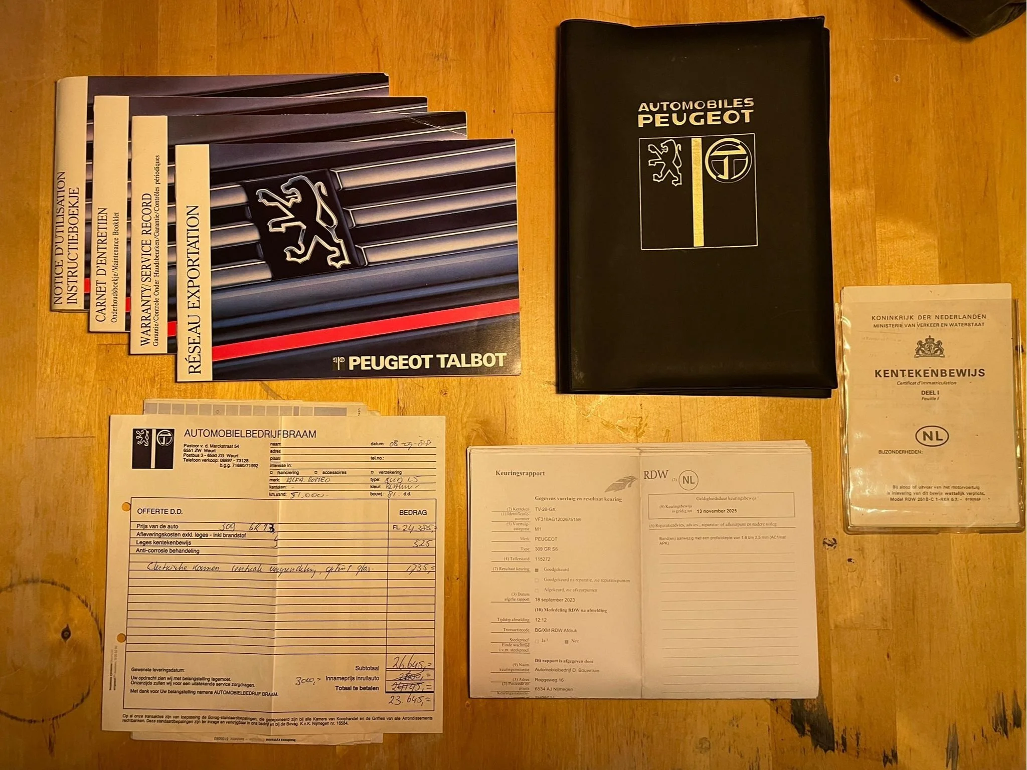 Dit exemplaar is nieuw geleverd aan een mevrouw in ‘89, die haar Alfa Romeo Sud inruilde op de 309. Tijdens het bestellen van de 309 heeft ze als opties elektrische ramen en (bruin) getint glas aangevinkt. De auto is 22 jaar in haar bezit geweest en heeft altijd binnen in de garage gestaan. Toen mevrouw stopte met autorijden is de auto verkocht aan een oudere meneer met een kilometerstand van 28.168. Na 11 jaar heeft hij hem weer verkocht aan een jonge Peugeot liefhebber waar wij de auto van hebben gekocht. In dat jaar is er een hoop onderhoud uitgevoerd. Zo is er 2x een onderhoudsbeurt gedaan waarbij de olie en het filter zijn vervangen. De aandrijfassen zijn begin 2024 vervangen. Ook zijn toen de remblokken, remschijven, alle schokdempers rondom, banden en de remvloeistof vervangen. Als laatste is er 200 km geleden een onderhoudsbeurt uitgevoerd waarbij de bougies zijn vervangen.