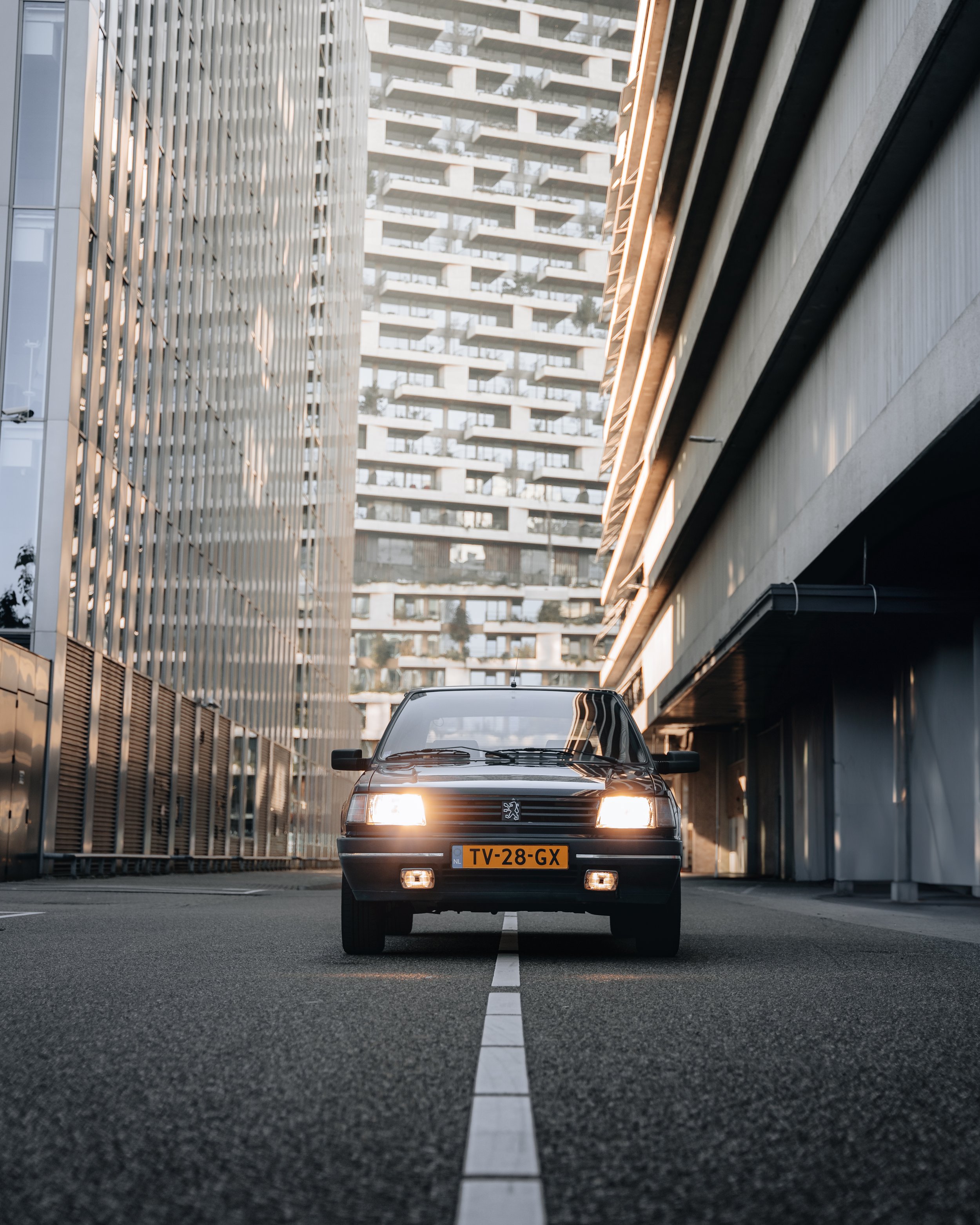 Het gaat hier om de prefacelift 309 uit 1989, met een 1.3 liter grote viercilinder met carburateur, hetzelfde blok als uit de Simca 1100 en 1307. De auto is geleverd in een donkerblauwe kleur, deze kleur is doorgebracht in het interieur dat verscholen is achter bruin glas. Om de auto net even wat meer contrast te geven zijn er 2 bronzen lijnen op beide flanken te zien en in combinatie met de bronzen GTI velgen is het plaatje helemaal compleet.